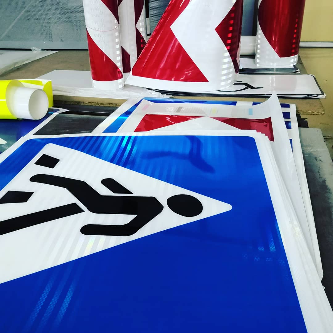 Основа знаков изготавливается из оцинкованного металла толщиной 0,8-1 мм (с I классом толщины покрытия по ГОСТ 14918-80) с применением световозвращающих пленок различных типов: